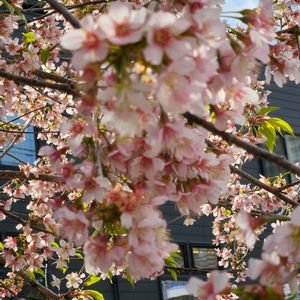 ショッピングモールのヒマラヤ桜が開花始めました。ヒマラヤ原産 地球温暖化や環境汚染原因の二酸化炭素や二酸化窒素の吸収率が高くソメイヨシノの5倍あり環境浄化木エコザクラと呼ばれている。蜜も多く小鳥が飛び交います。今日はスズメがきました。