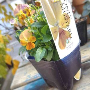 連投失礼します🤗 エッグタルトさんと一緒にこの子もお迎えしました😊 ゲブラナガトヨさんのハニーマスタード🌼 ゲブラさんのビオラはどれもお花が小さくて可愛らしいんです🥰 今年のビオラのお迎えはこの子達で最後かなぁ…たぶん😅💦