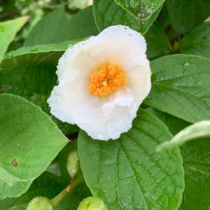 今の家に引っ越した時、 シンボルツリーにしたいとお迎えした ナツツバキ シャラの木 まん丸つぼみが開いたよ💕 可愛い‼️ 去年よりたくさんつぼみがあるの 楽しみだなぁ〜💕