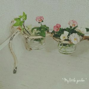 my little garden *花記録 アンティークなスタンドに 愛らしいビオラを…(*´-`)