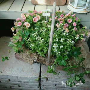 昨日の仕事休み園芸店で 可愛いカリブラコアを購入したので シュガーパイン×アリッサムと バスケットに寄せ植えました(*´-`) ナチュラルな雰囲気に なったかな〜 *