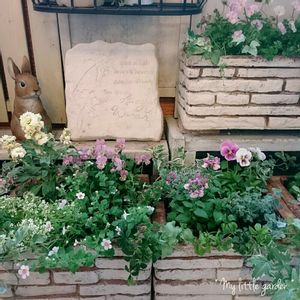 * my little garden * 仕事休み * あぁでもない…こうでもないで やっと完成したミニ花壇(*´-`) 左側 *゜(\(\ c(⌒(_*´ㅅ`)_•*¨*•.¸¸☆*・゚