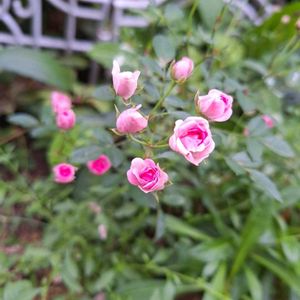 極小ミニバラ ミサキ 草丈60cm位でまだまだ伸びそう 100位までは行くようなので 今後の成長が楽しみ そして ミニバラ サンフォニーアイ 黄色にオレンジ🧡の絞りが入って 凄く可愛い😍