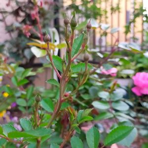 極小ミニバラ・みさき もうすぐ満開です😆 えらいね。冬越したねー😘😍 と言いながら、 気安く触ると 怪我🩹します😭 鋭い🪒小さな棘は、 大輪の薔薇🌹にも、負けず劣らず🗡 厄介です😱