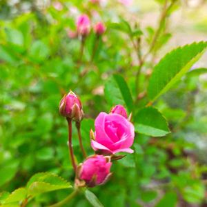 おはようございます☀雨上がりの今朝はミニバラミサキちゃんに蕾がつき始めてました🤗💕可愛い😍一番好きなミニバラです❣️