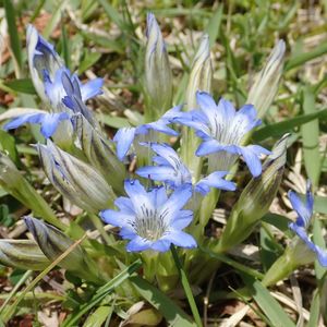 2023/5/1 雲仙 ハルリンドウ 車🚗停めた近くの日当たりのいい原っぱいっぱいに咲いてました😊 秋にはウメバチソウやワレモコウが咲く人気スポット(個人の感想です)。足元に気をつけて歩きましょう! と言っても、「広場」という看板があって子供などが遊ぶこと前提の原っぱなんですけどね😁😁😁 Q