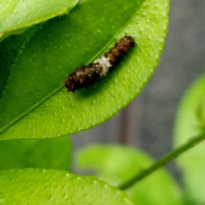 近所の小さなミカンの木にアゲハの赤ちゃん発見❣️ ほとんど前の子に食べつくされて残りの葉っぱが少しだけ❣️😭 無事に大人になれるかな〜?🤔 頑張れ(๑•̀ㅂ•́)و✧💪
