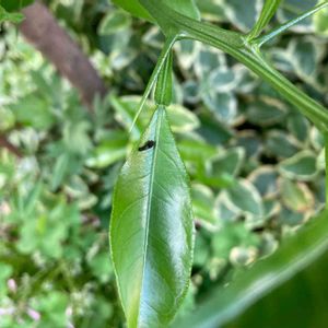 柚子(多田錦)とアゲハキッズ 私のバイブル、小竹幸子さん著者の『無農薬でバラ庭を』の中にこんな一節があります。 「どんな薬でも薬は薬、化学農薬を自然農薬に置き換えただけのオーガニック栽培には、私は、納得しかねます。」 痺れますね。 ローメンテナンスなベランダに憧れ、せっせとニームオイルを散布していた時に感じていた違和感を、みごと言い表わしてくれました。自然のバランス(害虫↔︎ハンター等ですね)を利用することで、ローメンテナンスを実現できるので、虫自体を完全に排除してはいけませんね。 ということで、ニームの散布も控えていますが、自然サイクルが出来上がってない我がベランダでは虫湧きまくりです。 高価な苗、手塩に育てた苗、そもそも集合住所なのでお隣さんに迷惑をかけられません。なんとかしないといけません。じゃあ、どうするか? 答えは簡単、補殺です。 かわいく言うとテデトール。 そうです、私がハンターになるのです💪💪 と年甲斐もなく勇んでアブラムシ等をセロハンテープでペタペタ取っていましたが、いつのまにかむっちむちに成長したグリーンボーイたちの前に手も足も出ません。。。 皆さん、サイズ感は大切ですよ。 ごま粒くらいの時にしとめましょう。