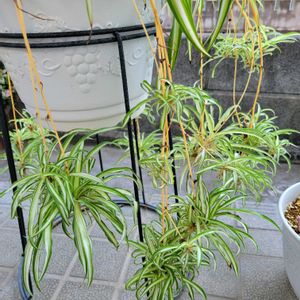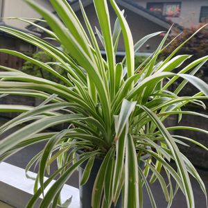 おはようございます ☁️ 🌿オリズルラン 今年もベランダ通せんぼです😅 外斑と中斑を混ぜてるんですけど 外斑のランナーの方が細いですね 🧐