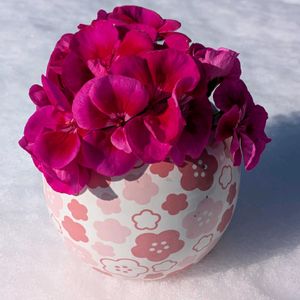 とうとう雪が降りました お花を摘んで家の中で冬越しです 上手くいくかしら?