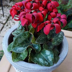 花びらがカールしてて可愛い 経 2センチ程です。 部屋用です。 初めてのミニシクラメンカールです。 花びらがクルクルっとカールしてるので、ミニシクラメンカールと呼ぶそうです。 少々お高かったけど、気に入り購入してしまった。 直ぐ枯らしてしまうのにね〜っと自分に叱りながら持ち帰りました。 真っ赤でとても可愛いです。