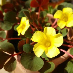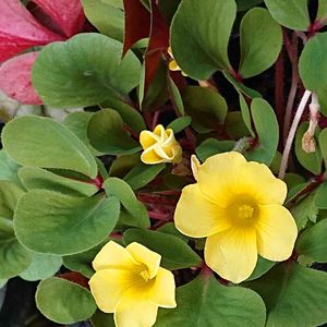 ニューフェイスのオキザリスちゃん🎵 黄色い子はペアーリーフ 葉っぱの裏が赤い❤チラ見えが可愛い子😆 ピンクちゃんは 先日upしたバリアビリスの色違いのラベンダー💜 ちょっと大きめなオキザリスです 最近、園芸店へ行くと色んな種類のオキザリスに出逢います😍 お値段もとってもリーズナブルだからついつい、、、 お日さまによく当たると可愛いお顔が見れるので晴れた日は勢揃いさせてます✨
