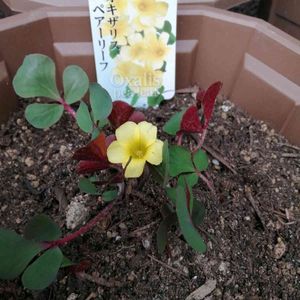 オキザリス ルテオラ(ペアーリーフ)の可愛い葉っぱちゃんも出てきましたよ♡ 可愛い葉っぱの形とえんじ色の後ろ姿がもうすぐ見れるね