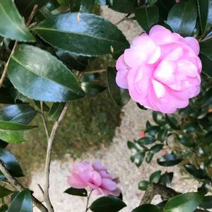 山茶花の近くに咲いていました! ピンク色の山茶花って有りますか? そもそも山茶花っぽくはないですが、如何なものでしょうか? 分かる方教えてください。