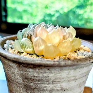 今日のお花 🍀ハオルチア ユリ科 ハオルチア属 GSに参加して始めてハオルチアの投稿を見てこんな不思議な植物があるのと感動しました こちらは展示会で見たハオルチアです