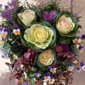1・2・3 ハボタンとビオラパンジーのハンギングバスケット展示会へ行ってきました🍀 お正月の寄せ植えの参考に… 4・5 同じ会場に飾ってあった籐人形 和風でお正月の雰囲気が◎ 楽しそうな表情まで見えてきそうです😊