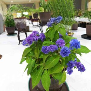先月の展示会で飾った大分産のヤマアジサイです。 本種のような手毬咲きが人気です。