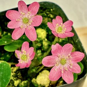 ピンクユキワリイチゲ🩷 (桃色雪割一華) ユキワリイチゲで発見された桃花。 普通は少し緑がかった薄青のような色ですが、各地で様々な花色がわりが発見されています… 《スライドpic》 ① ~⑤ 💜ユキワリイチゲとコラボ 素敵すぎ~💓(*゚▽゚*)