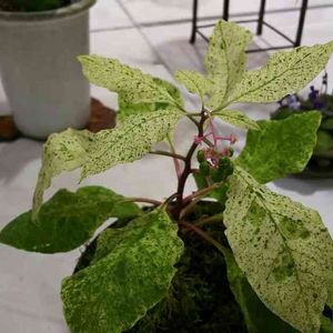 展示会で飾ったヤマゴボウの斑入りです。親は派手過ぎて中々育ちませんがこの程度の斑入りだと成育に問題もなく元気です。