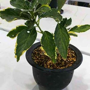 展示会に飾った極黄覆輪のアジサイです。出芽は雪白で後冴えで黄が乗ります。 まだ数の少い品種ですが来年は花も見れそうです。