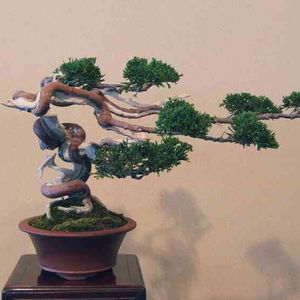 先日行った国風盆栽展2の中で… よく見る松柏類の ジンシャリ これはもうシャリ部が 極薄で簾のように向こうがチラホラ見えちやってるんだから凄い 水吸も薄くこれで生きているなんて驚いた作品