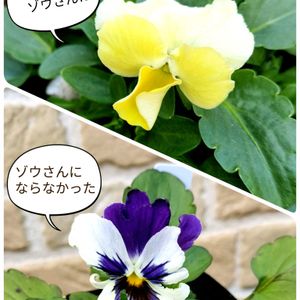ぞうさんビオラ 花びらの一つがくるっと丸まったぞうさんビオラ ぞうさんのお顔のようです 1 今年のお迎えぞうさん 2 昨年のお迎えぞうさん