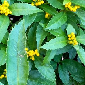 [今日のお花]千両 千両の実💛 実がぎっしりと付いた黄千両💛 通りのさつきの植え込みに3年前くらいから育った黄千両💛 昨年初めて実が付いて、キラキラテープをした甲斐もあって良く育ちました。 お隣さん、職場の皆さんにも喜ばれこちらまで嬉しい出来事でした😊 実を少し鳥に残し、翌日はすっかりきれいに食べていましたよ🤗