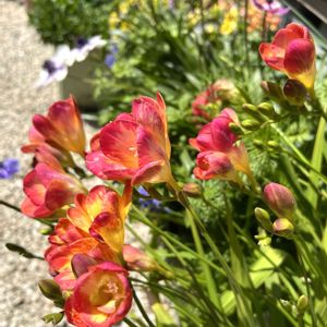 フリージア 元気に開花中 鉢にぎゅうぎゅうになってきた😅