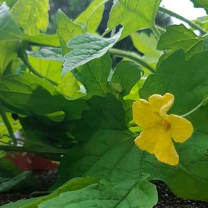 苗は小さいけど、ゴーヤーに花🌼が咲きました。 楽しみ〜♫
