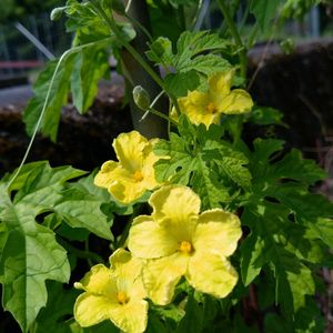朝日を浴びて気持ちよさそうなゴーヤーの花😊これから秋?冬?なのだけど…まだまだ〜!!と爽やかな生命力を感じました✨