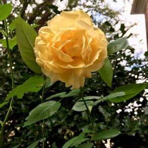 薔薇 ジュリアチャイルド🌹 昨日まで蕾だった薔薇が咲きました🥰 ひょろっとした苗木でしたが、次から次へと蕾をつけてくれます。 一輪挿しにして飾ろうかな💐