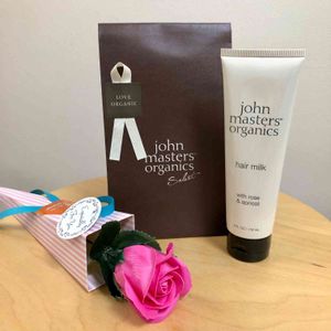 長男とお嫁ちゃんが 4月に生まれたベビちゃんを連れて 母の日のプレゼントを 持ってきてくれました。 ピンクの薔薇のSoap Flowerと John masters organicsのhair milk ありがとう❤️