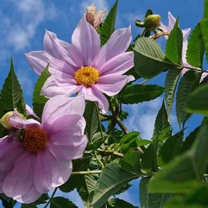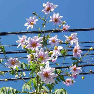 青空にのびのびと〜💙 コダチダリア (別名 皇帝ダリア) 皇帝ダリアのほうが 馴染みがありますね 一度 庭に植えたら 葉っぱは場所をとるわ💦 背が高くて支柱がいるわ💦💦 ‥‥で ワンシーズンで諦めました😭 見るたび また欲しいな〜〜って 思ってしまうけど😂