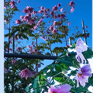 3m以上かなりの高さ青空に映えて 伸び伸びと気持ち良さそうに 咲いて綺麗でした🌸💙💕🎵