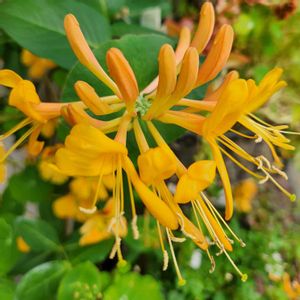 今日のお花 スイカズラ ロニセラ(スイカズラ科) ①甘い香りがするスイカズラ この種類もいい香りなのかな? うっかり嗅ぐのを忘れました。 ②長いツルが2階まで。