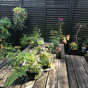 友人の庭❶リビングからi phone撮影 友人は苔玉や盆栽、寄せ植え、リース作りを習っていて遊びに行く度に、自然の中で風化して味わいを増していく苔玉に感動。 お部屋も余分な物は一切無くて、和風の佇まい。このままモデルルームになるインテリア風景。常に断捨離と、私にはまだ程遠い、理想的なお庭とお家です。こんな暮らしがしてみたい。と、自宅に戻ると、物の多さにため息がでます。 "うちは寄せ植え作っても、作り立ては綺麗だけど、いつの間にか弱いのは、根腐れしたり、根付かず、ダメになっちゃうんだ。 小花が可愛いアリッサムとか、つい寄せ植えに入れるけど、育つのむずかしい。陽の当たる所追いかけて、大事な鉢は移動させてる。” "そんなことする必要ないのよ。植物は、与えられた環境に合わせて生きてくから、環境に合うものだけが残る。ダメなものは、もともとダメだから、残った物を育てていけばいいのよ。 生きて形あるものが、いつまでも同じ形でいる事はないじゃない。" スッキリと生きている人の言葉。私の心にはいりました。 ダメにしてしまうと、日照不足ベランダでは、植物を育てては、いけなかったのではないか、ごめんなさい🙏と落ち込んでいましたが、 心が楽になりました。