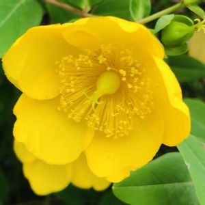 💠 今日のお花・ヒペリカム 💠 別名 タイリンキシンバイ(大輪金糸梅) 種が飛んで 庭のあちらこちらで咲いています🌼 (2025.7/3 撮影)