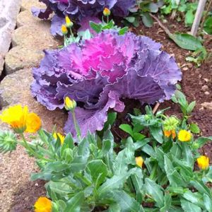 今年度の冬花壇は葉牡丹を植えました💜💛😊