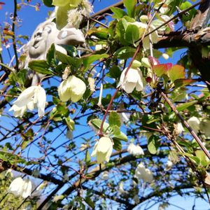 冬咲きクレマチス シルホサ ジングルベル🔔 いつもアーチの下から見上げて撮影していましたが、脚立に乗って横から撮ってみました。ドレスを着た妖精さんみたい♡