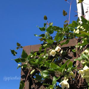 ☆Love and peace to all.☆ 先週から咲き始めてるクレマチス・シルホサ ジングルベル 例年より2週間ぐらいも早かったけど、とにかく、可愛いです。