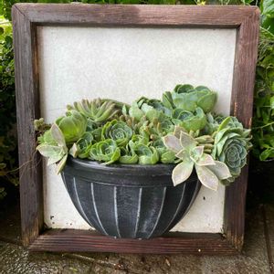 こんにちは😃 この前作った、壁かけの寄せ植えヾ(・ω・`)ノ ハロー♪ なんか、いい感じだったから撮ってみたよ・*✧:.◝(⁰▿⁰) やっぱり何日か経つと馴染むね〰(´∀`*)ルン♬ 早く、お嫁に貰ってくれる人いないかなぁ👰