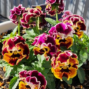 おはようございます 素敵な花色が気に入ってお迎えした サントリーさんのミルフルです 適度のフリルも1つ1つの花の色が違うのが良いですよね💕 ②は同じく虹のような花色が気に入った花日和さんのビオライリスプリエール 次はどんな花が咲くのか楽しみです