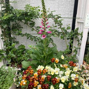 ジギタリス・キャメロットローズ 昨年秋、寄せ植えに仕込んでおいたジギタリス ネメシアやワスレナグサが押しやられ窮屈そう 薔薇とのコラボはまだ見れないけど ビオラがなんとか頑張ってくれて良かった