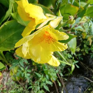 《アリアケカズラ〜宮古島にて》 熱帯・亜熱帯原産のキョウチクトウ科のツル性植物🤭 大きな黄色い漏斗形の花を咲かせます🌼🌸 丈夫で花付きが良く、日当たりの良い場所を好みます🤭🌼