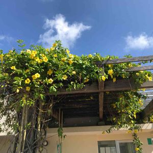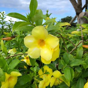 ハワイの住宅街でよく見かける花です。花の大きさは10cmくらいあります。太陽のように明るい花です。 すみません、名前が分かりません🙇🏻♀️