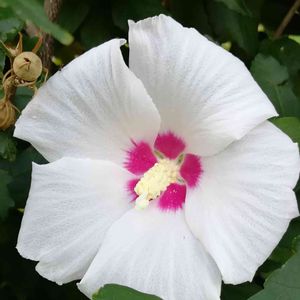 川沿いの遊歩道脇に咲いていました😊 🌿♥️ムクゲの花♥️🌿 別名ハチス 種類は宗旦です😌💓 どこにでも見られるお花ですね♥️