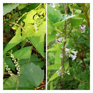 小さい花が咲いていました😊 🌿🌼山芋の花🌼🌿 ☘️♥️ヘクソカズラの花♥️☘️ 川沿いの遊歩道で咲いていました😊