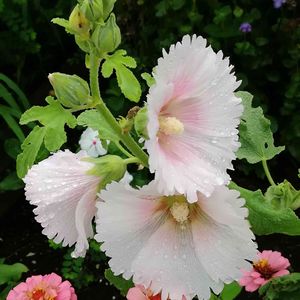 おはようございます🐈 今日も楽しい1日になりますように🎶 🌿🌺立葵と百日草🌺🌿 朝散歩で出会いました😊