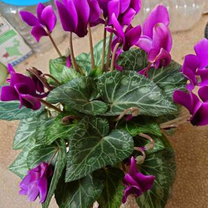 今朝のシクラメン 今冬でしたっけ?ってくらい次々咲いています😚 蕾もたくさん✨ いつも今くらいには枯らしてたのでちゃんと育てると夏も咲くんだな〜と思ってたのですが異常なんですね😅 でも開花が止まらない💦 紫の花がお気に入りなのであまり無理しないで長生きして欲しいなぁ