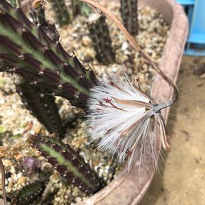 鉄錫杖 Senecio stapeliaeformisの花が咲き終わってたんぽぽ みたいに飛ぼうとしてたから捕まえた(❁´ω`❁) セネキオって房ごとカビたりする時が前の家では多かったから実生とか考えてなかったけどここまで元気に飛び立とうとしてたらいける気がする( ๑•̀ω•́๑) キク科の多肉だからキクの実生方法を試してみることにします(ノ∀`)タハー たんぽぽみたいだし、ドルフィンネックレスって品種もあるし実生出来ないことはないと思うんだよねー( •́ㅿ•̀ ) ↓↓↓緑のまとめに播種の経過載せます(❁´ω`❁) https://greensnap.jp/greenBlog/9554275?ref=dsh_i